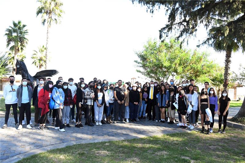 Başkan Topaloğlu ve öğrenciler daha sonra hatıra fotoğrafı çektirdi.