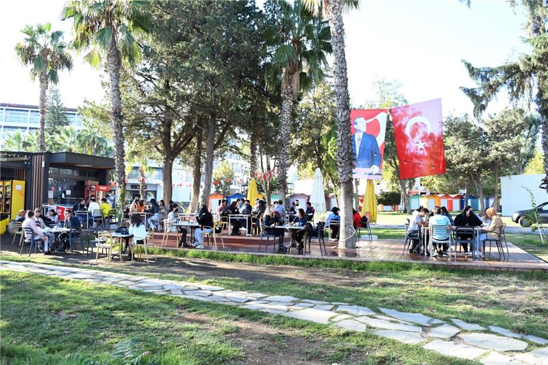 Mustafa Ertuğrul Aker Parkı'nda öğrencilerle bir araya gelen Başkan Topaloğlu, öğrencilere Kemer'i anlattı, belediye olarak eğitime yaptıkları desteklerden bahsetti.