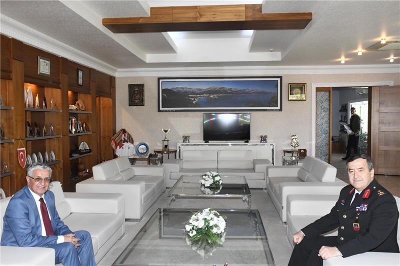 Antalya İl Jandarma Komutanı Tuğgeneral Yavuz Özfidan, Kemer Belediye Başkanı Necati Topaloğlu'na iade-i ziyarette bulundu.