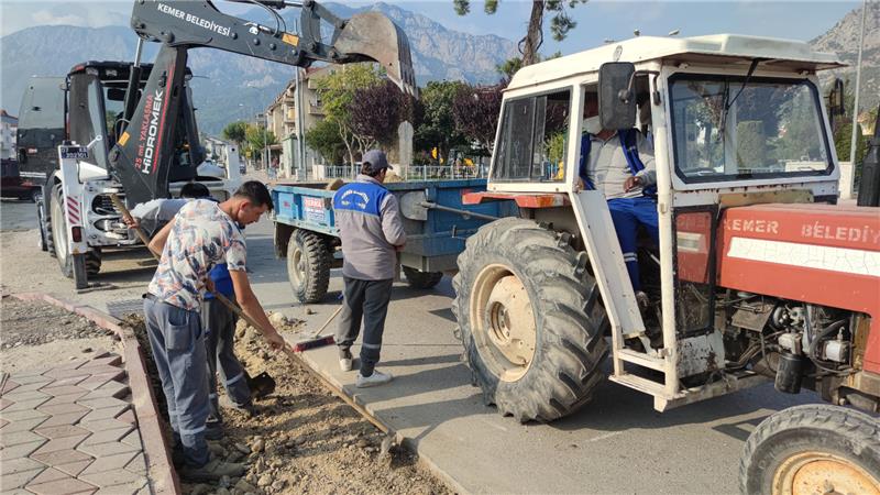 Kemer Belediyesi'nin birçok alanda eş zamanlı olarak yürüttüğü yağmur suyu uzaklaştırma çalıştırmaları devam ederken, gerek kapalı menfez yapım çalışmaları gerekse koruge borularla olası bir yağış da yağmur sularını uzaklaştırma çalışmaları yapılıyor.