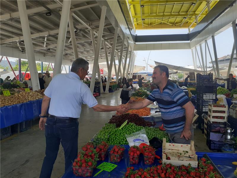 Kemer Belediye Başkanı Necati Topaloğlu, Kuzdere Mahallesi'nde kurulan sebze ve meyve pazarında tezgah açan esnafı ziyaret ederek hayırlı işler dileklerinde bulundu.