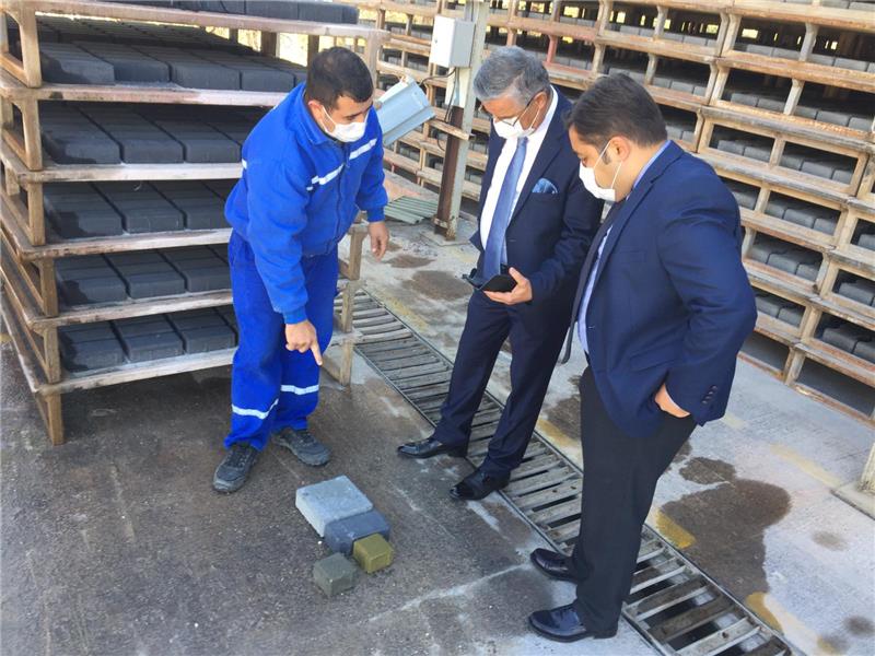 Parke ve kilitli taş üretim tesislerinde yeni gelen baskı kalıplarını inceleyen Başkan Topaloğlu, yapılacak olan kaldırım çalışmalarında yeni desenlerle farkındalık oluşturmayı planladıklarını kaydetti.