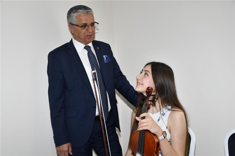 Kemer Belediye Başkanı Necati Topaloğlu merkezi ziyaret ederek, eğitim alan gençlerle bir ara geldi. Kemer Belediyesi Gençlik Orkestrası öğrencilerinin derslerine konuk olan Başkan Topaloğlu, merkezin Kemer'de büyük bir eksikliği tamamladığına dikkat çekti.