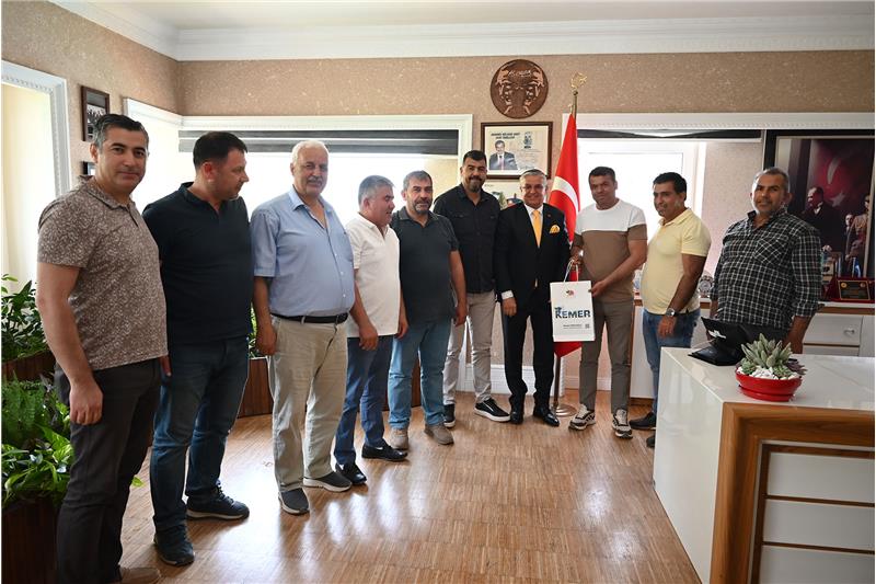 Kemer Kahramanmaraşlılar Derneği Başkanı Turabi Genç, Kemer Belediye Başkanı Necati Topaloğlu'na nezaket ziyaretinde bulundu.