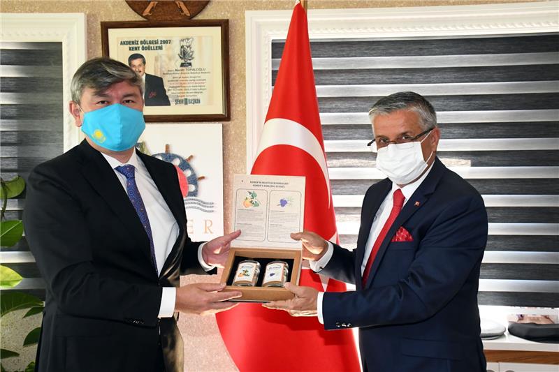 Kazakistan Büyükelçisi Abzal Saparbekuly, Kemer Belediye Başkanı Necati Topaloğlu ile bir araya geldi.