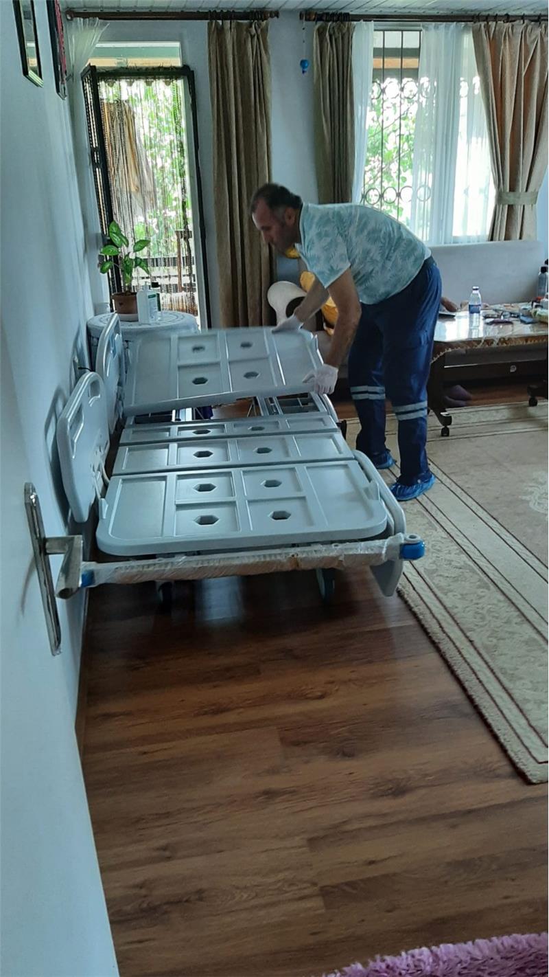 Belediye ekipleri, evde bakım hizmetlerinin yanı sıra hasta olan vatandaşlara da hasta yatağı ve tekerlekli sandalye temin ediyor.