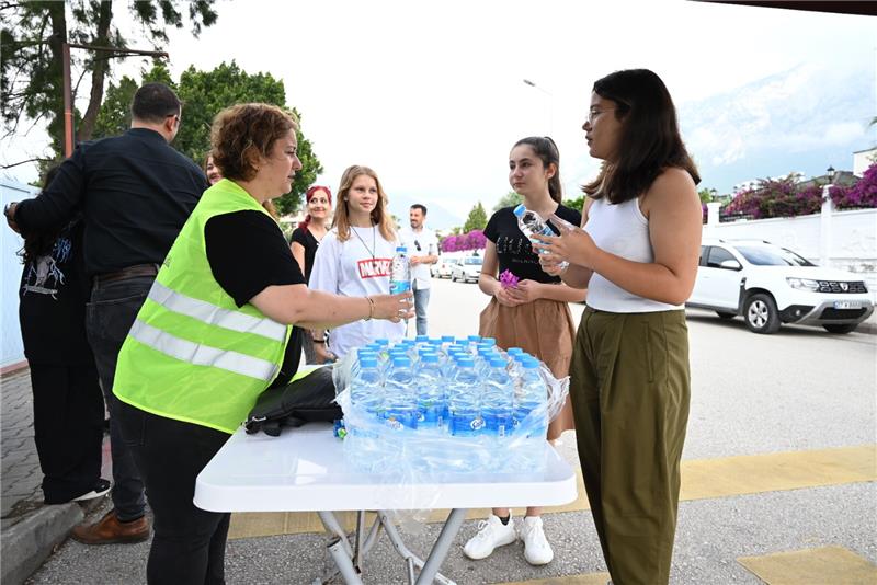 Kemer Belediyesi Kültür ve Sosyal İşler Müdürlüğü ekipleri, Liselere Geçiş Sınavı'na (LGS) giren 579 öğrenciye okul önlerinde su ve şeker dağıttı.