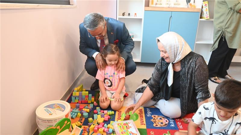 Başkan Topaloğlu ve eşi Fikriye Topaloğlu, sınıfları tek tek dolaşarak minik öğrencilerle sohbet edip oyunlar oynadı. Doktorculuk oyunu oynayan çocukların Başkan Topaloğlu'nu muayene ettiği anlarda ise renkli görüntüler ortaya çıktı.