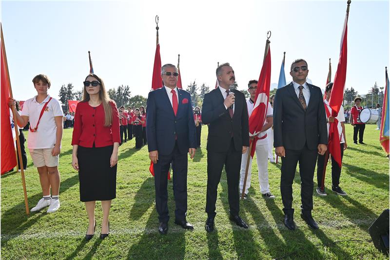 Program, saygı duruşunda bulunulmasının ardından Şefliğini Furkan Üstündağ'ın yaptığı Kemer Belediyesi Gençlik Orkestrası eşliğinde İstiklal Marşı'nın okunmasıyla başladı. Kaymakam Solmaz, Başkan Topaloğlu ve Başsavcı Almalı, kutlama programına katılan öğretmen ve öğrencileri selamlayarak Cumhuriyet Bayramlarını kutladı.