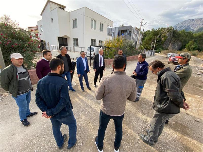 Kemer Belediye Başkanı Necati Topaloğlu, Göynük, Kuzdere ve Merkez mahallelerindeki alt ve üstyapı çalışmalarını inceledi.