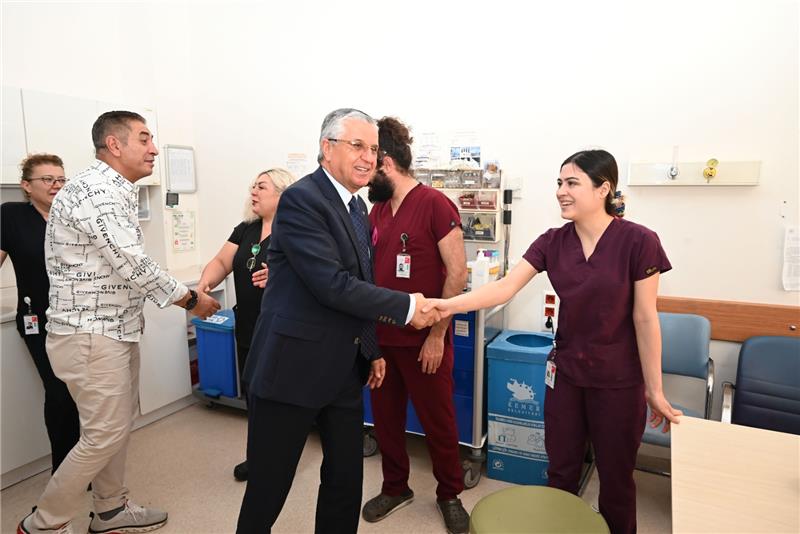 Kaymakam Çam, Başkan Topaloğlu ve beraberindekiler daha sonra Kemer Devlet Hastanesi'nde hastaları ziyaret ederek bayramlarını kutladı ve geçmiş olsun dileklerini iletti.