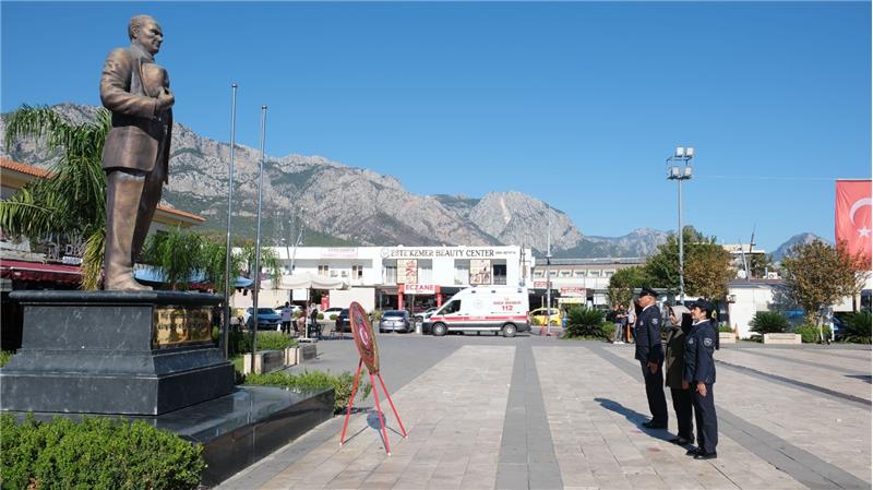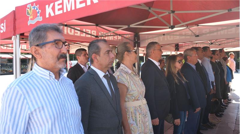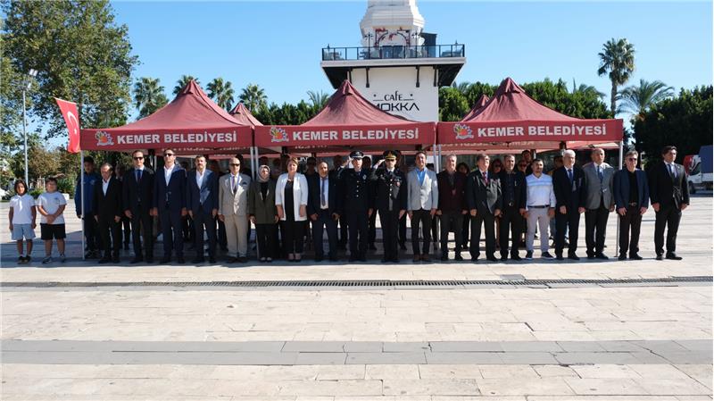 Kemer Cumhuriyet Meydanı'nda düzenlenen törene, Kemer Belediye Başkanı Necati Topaloğlu, Kemer Jandarma Komutanı Ömer Seyhan, Kemer Emniyet Müdür Vekili Yıldırım Ünal, Kemer Belediye Başkan Yardımcısı Mehmet Derya Baytekin,Kemer Belediye Meclis Üyeleri Cansın Efir, Ali Akar, Hüseyin Sek, Arslanbucak Mahalle Muhtarı Pınar Balaman, Beldibi Mahalle Muhtarı Bayram Ali Talih, Beycik Mahalle Muhtarı Caner Kavuz, Çamyuva Mahalle Muhtarı Rıdvan Vicir, Göynük Mahalle Muhtarı Sadık Şen, Kiriş Mahalle Muhtarı Faiz Çetin, Kuzdere Mahalle Muhtarı Serkan Günay, Merkez Mahalle Muhtarı Yusuf Salova, Ovacık Mahalle Muhtarı İsa Anatürk, Tekirova Mahalle Muhtarı Mustafa Barış, Ulupınar Mahalle Muhtarı Salih Sarıca, Yeni Mahalle Muhtarı Münevver Erkal, STK temsilcileri, siyasi parti temsilcileri ile kamu kurum ve kuruluşlarının temsilcileri katıldı.