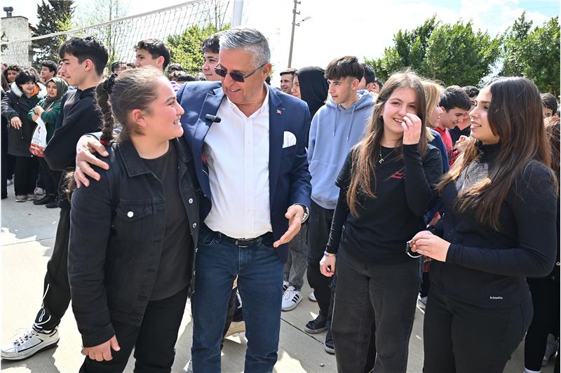 Göynük Fen Lisesi öğrencilerinin de yer aldığı kutlamaya katılan Başkan Topaloğlu, öğrencilerle ve öğretmenlerle selamlaşarak sohbet etti.