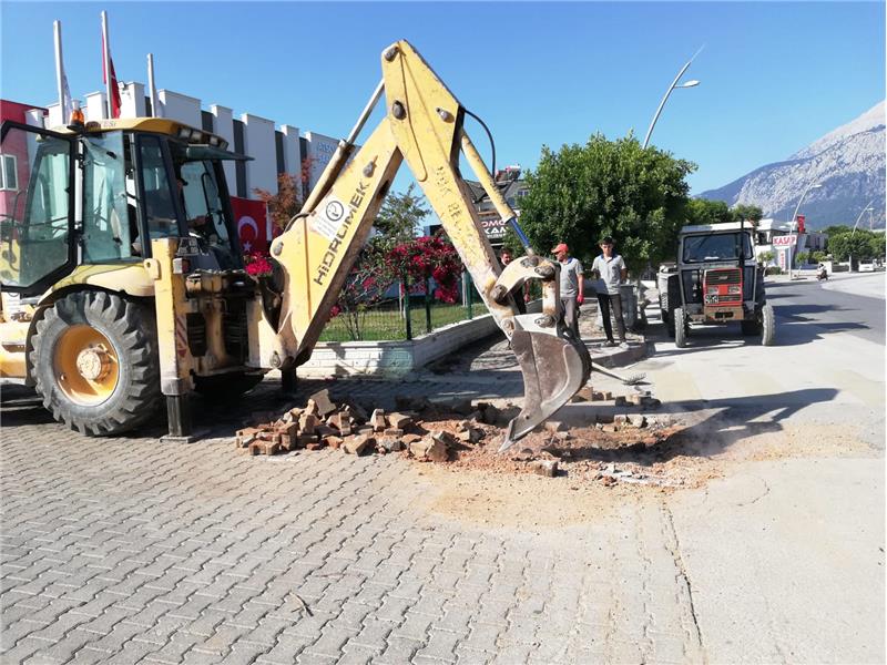 Kemer Belediyesi Fen İşleri Müdürlüğü ekipleri, ilçe genelinde yol ve kaldırım çalışmalarına devam ediyor.