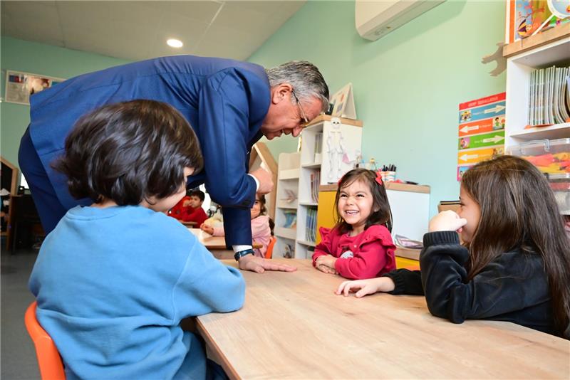 Belediye Başkanı Topaloğlu, etkinlik öncesinde anaokulundaki sınıfları tek tek dolaşarak miniklerle sohbet etti, ‘yanaklarından makas' aldı. Başkan Topaloğlu'na eşi Fikriye Topaloğlu da eşlik etti.