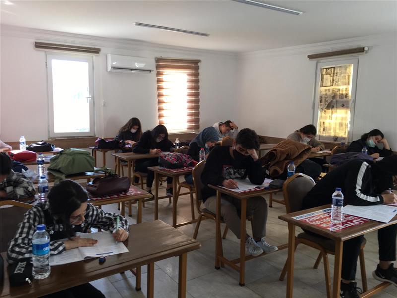 Kursta eğitim alan öğrenciler, pandemi kurallarına uyarak deneme sınavına girerek, kendilerini sınama imkanı buldu.