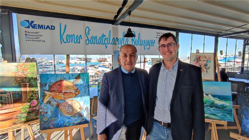 Kemer Turizmci ve İş Adamları Derneği (KEMİAD) tarafından düzenlenen sanatçılar buluşması etkinliği devam ediyor. Kemer Marina'da yer alan Shakespeare Kafede düzenlenen etkinlikte Kemer'de yaşayan sanatçılar bir araya geldi. Toplam 16 yazar, 6 ressam ve 8 farklı kategoride sanatçının katıldığı etkinliğin ikinci gününde, Hacettepe Güzel Sanatlar Resim Bölümü Yüksek Lisans mezunu Kemer Belediye Meclis Üyesi Hasan Ali Acar da sanatçılarla bir araya gelerek, bilgiler aldı.