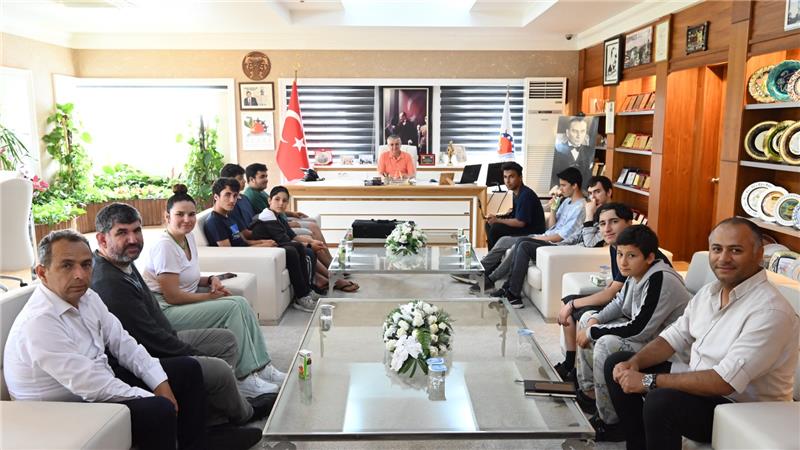 Sabah kahvaltı için Kındılçeşme Günübirlik Kamp Alanına gelen özel çocuklar, kahvaltının ardından Belediye Başkanı Topaloğlu'nu makamında ziyaret etti.