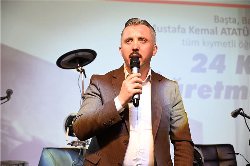 Öğretmenleriyle sahneye çıkan ve öğrencilik yıllarına dönen Başkan Topaloğlu, yaptığı konuşmada, “Her meslek çok güzeldir ama öğretmenlik ayrı bir güzel. Çünkü gelecek öğretmenlerin ellerinde şekilleniyor. Biraz daha idealist ve özverili çalışırsak ülkemiz daha refah düzeye ulaşacaktır. Ben de 27 yıl öğretmenlik yaptım. Bizim zamanımızda öğretmenlerin özlük hakları ve ekonomik durumları çok daha iyiydi. Benim Sayın Milli Eğitim Bakanı'ndan ricam, öğretmenlerin özlük haklarını ve ekonomik durumlarını gözden geçirmesi. Öğretmenin vekili olmaz. Vekilin sorumluluğu da olmaz.” dedi.