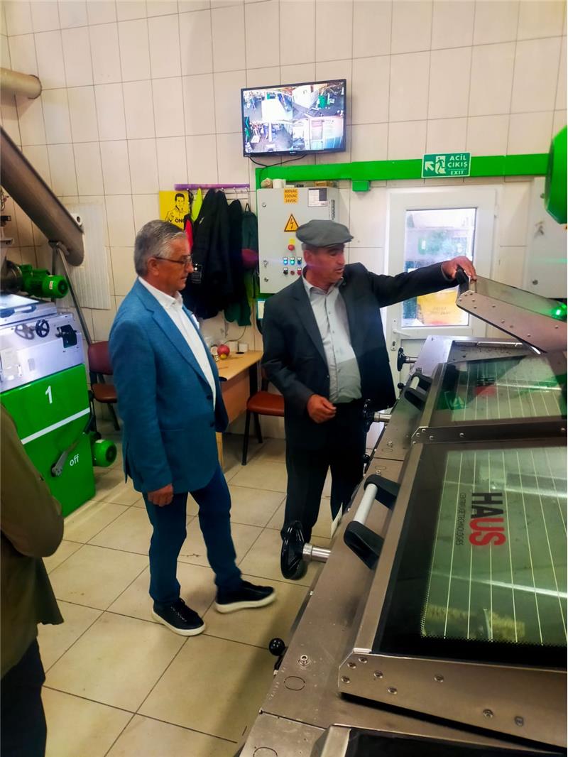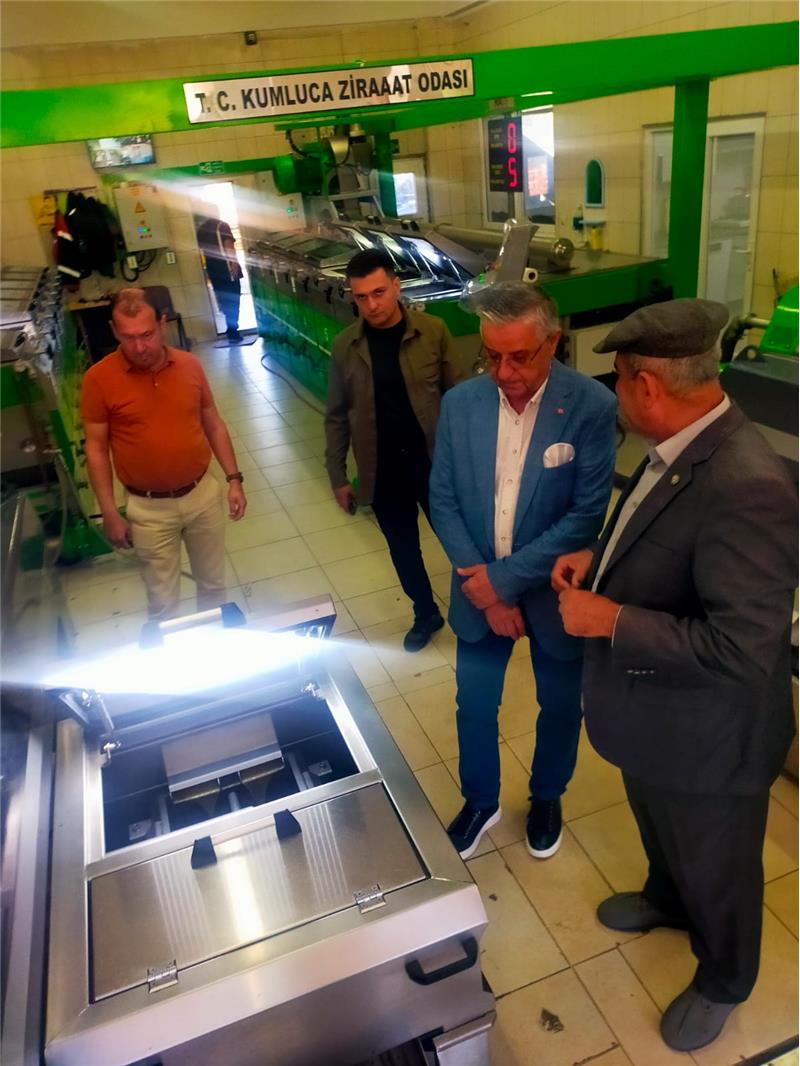 Kumluca Ziraat Odası Başkanı Hidayet Kökçe Başkan Topaloğlu'na eşlik ederek, fabrika ve fabrikanın işleyişiyle ilgili bilgi verdi.