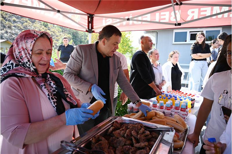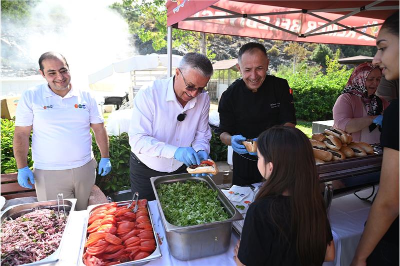 Öğrenci ve velilerle tek tek selamlaşarak sohbet eden Başkan Topaloğlu, mangalın başına geçerek öğrencilere kendi elleriyle köfte pişirdi. Başkan Topaloğlu ve beraberindekiler daha sonra öğrencilere köfte ekmek dağıttı.