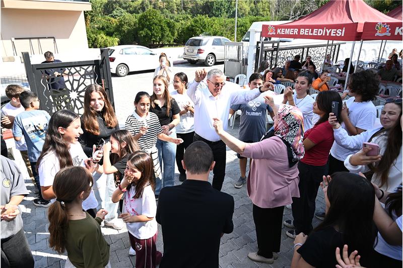 Kemer Belediye Başkanı Necati Topaloğlu, Kemer Belediyesi ATSO Eğitim ve Sanat Merkezi'nde ücretsiz olarak müzik eğitimi alan öğrencilere ve velilerine mangal partisi verdi.