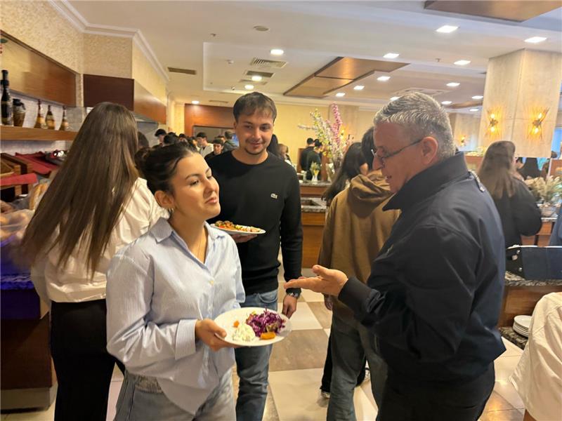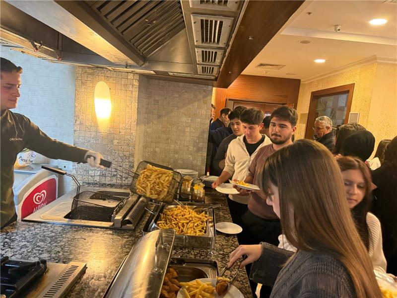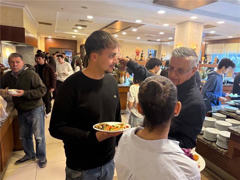 Kurs merkezinden servislerle otele getirilen öğrencileri, otelin girişinde karşılayan Başkan Topaloğlu öğrencilerle tek tek ilgilenerek sohbet etti. İftar saati öncesi açık büfeden yemeklerini seçen öğrencilerle de ilgilenen Başkan Topaloğlu, iftar sonrası da öğrencileri masalarında ziyaret ederek taleplerini dinledi.
