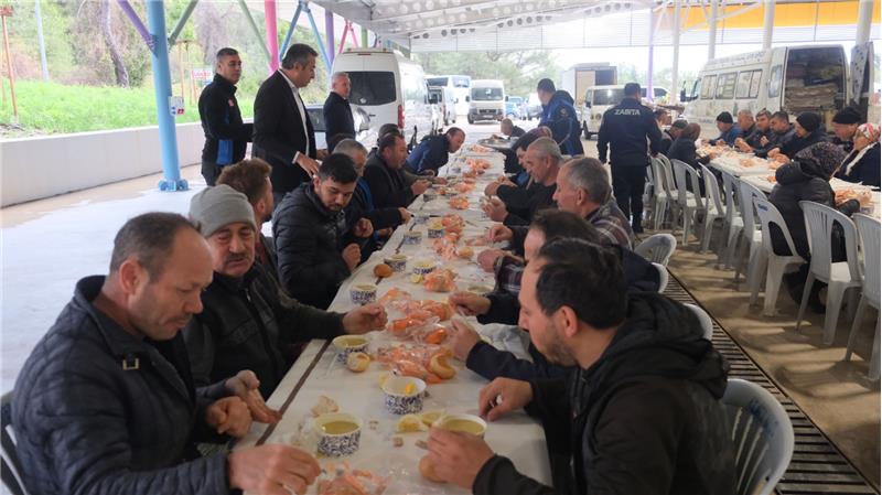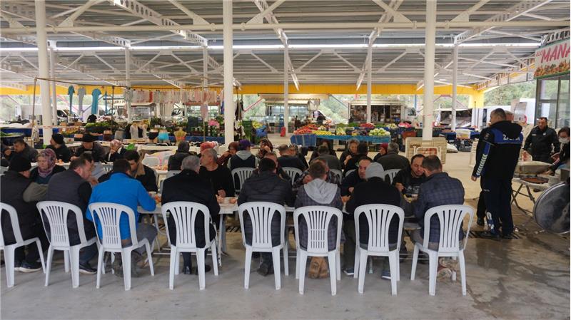 Kemer Belediye Başkanı Necati Topaloğlu, Tekirova kapalı pazar yerinde tezgah açan esnafla Kemer Belediyesi Zabıta Müdürlüğü'nün düzenlediği çorba ikramında bir araya geldi.