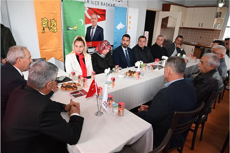 Başkan Topaloğlu ve beraberindekiler Zafer Partisi Kemer İlçe Başkanı Temiz ve ilçe yönetimi ile selamlaşarak sohbet etti.