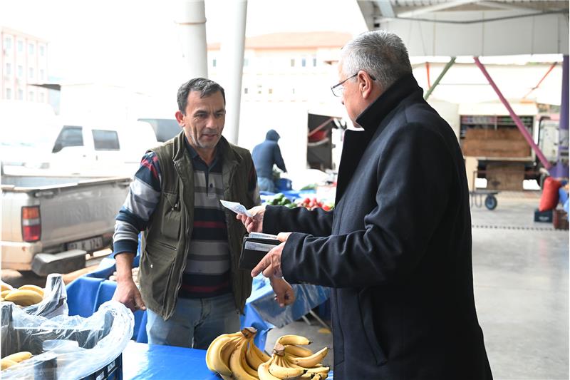 Çorba ikramı öncesi pazar esnafını gezen Başkan Topaloğlu ve beraberindekiler, esnafla sohbet ederek, hayırlı işler temennisinde bulundu. Pazar alanına alışveriş için gelen vatandaşların da isteklerini dinleyen Başkan Topaloğlu, çocuklara meyve ikramında bulundu.