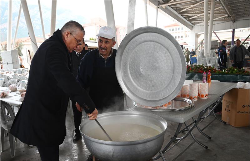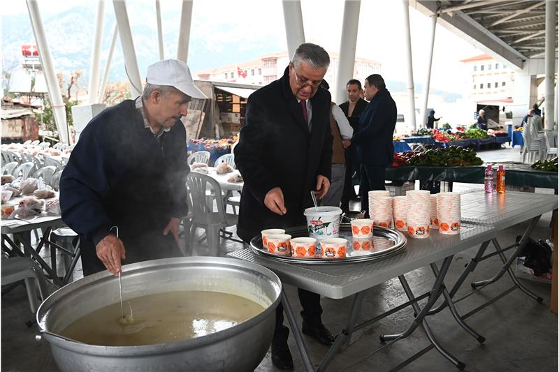 Kemer Belediye Başkan Yardımcısı Emin Gül, kardeşi Emel Gül Kurga ile 42 yıl önce vefat eden babaları Mustafa Gül hayrına Kuzdere kapalı pazar alanında tezgâh açan esnafa ve vatandaşlara çorba ikramında bulundu.