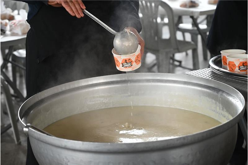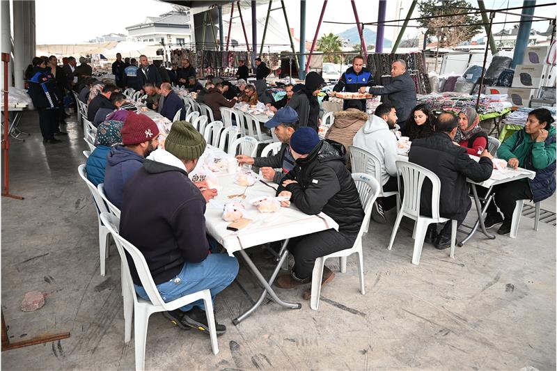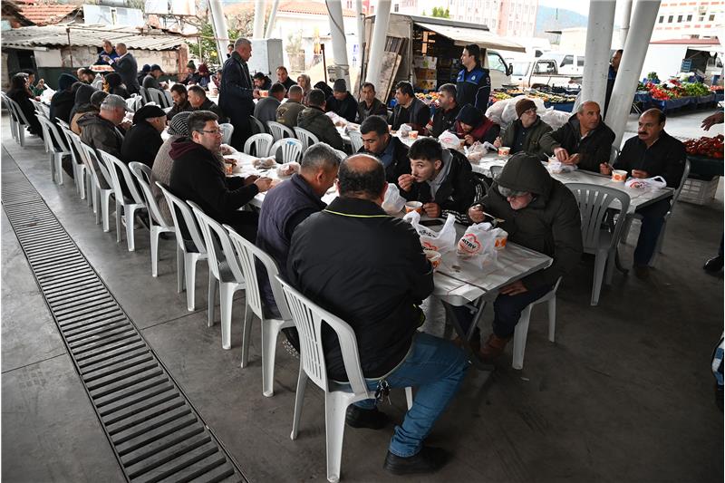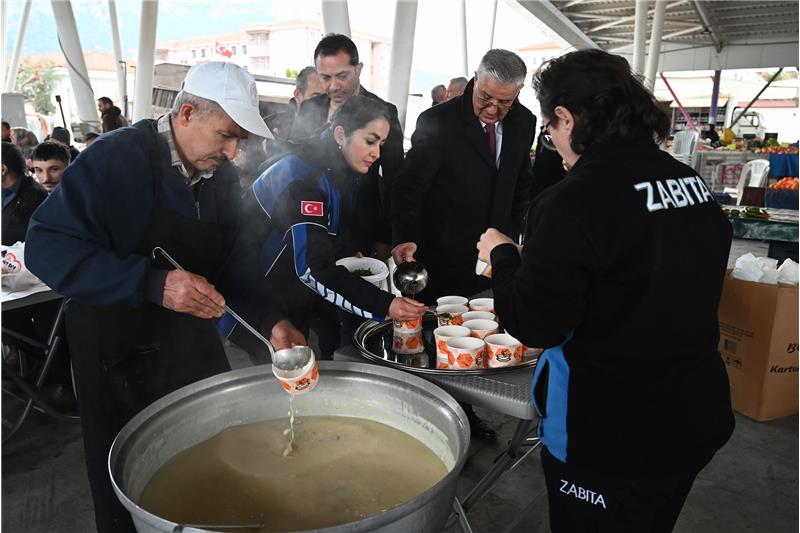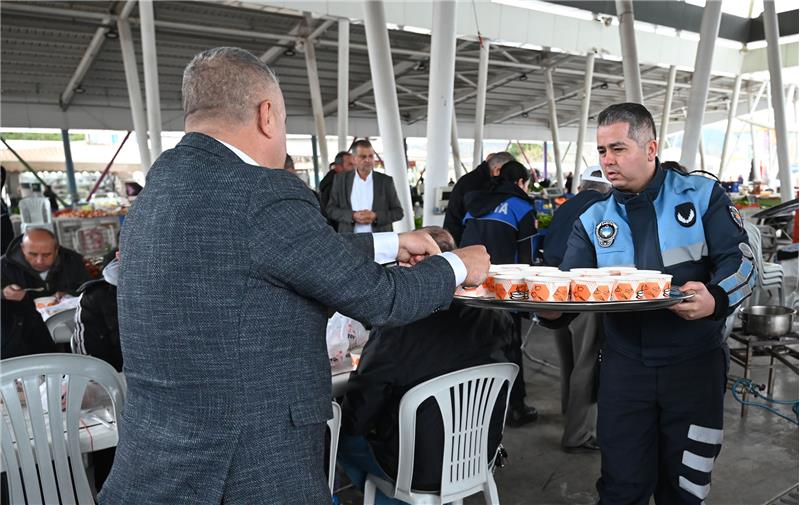Zabıta ekiplerinin kurduğu masalara davet edilen pazar esnafı, soğuk havada sıcak çorbalarını içti. Başkan Topaloğlu, kendi elleriyle kaselere çorba koydu.
