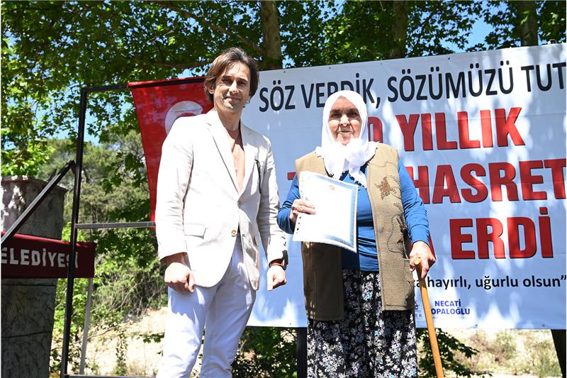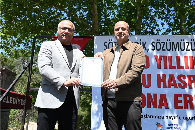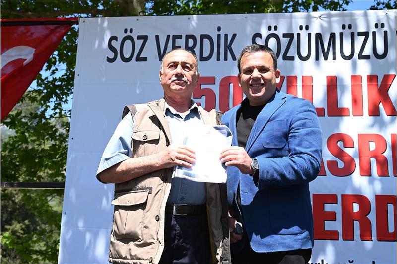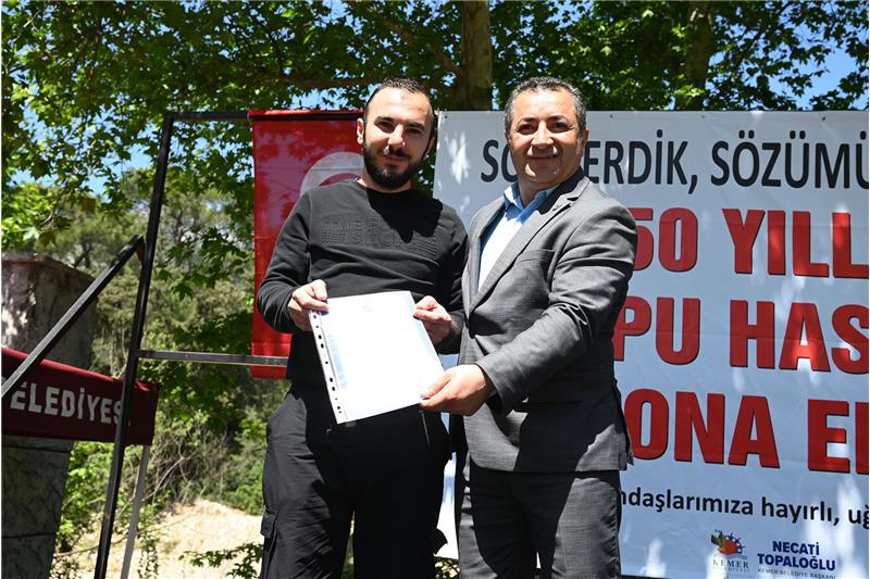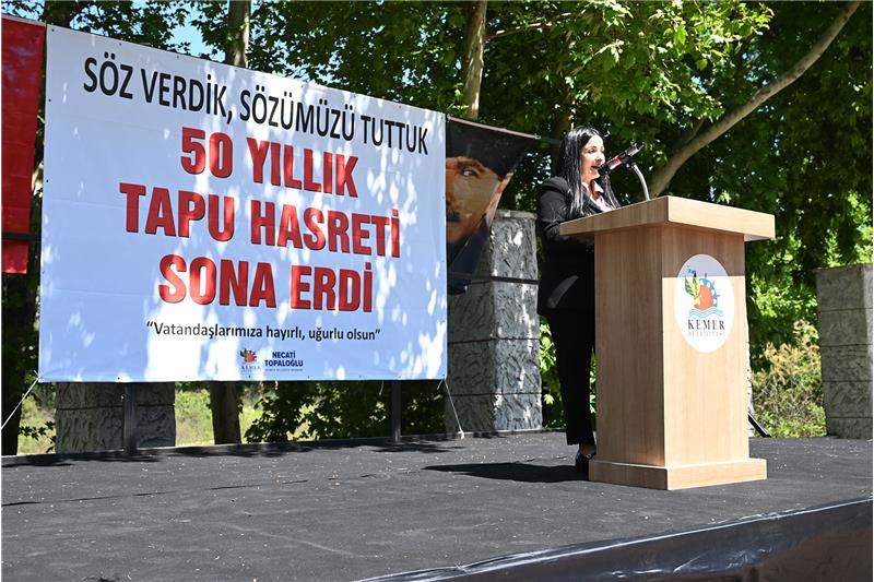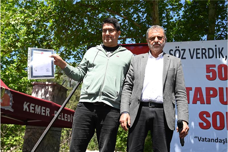 Kemer'in Beldibi Mahallesi'nde yaşayan vatandaşların 50 yıllık tapu hasreti sona erdi. Kemer Belediye Başkanı Necati Topaloğlu, 50 yıl sonra 800 dönümlük alandaki hak sahiplerine düzenlenen törenle tapularını dağıttı.