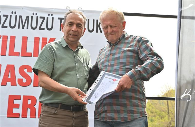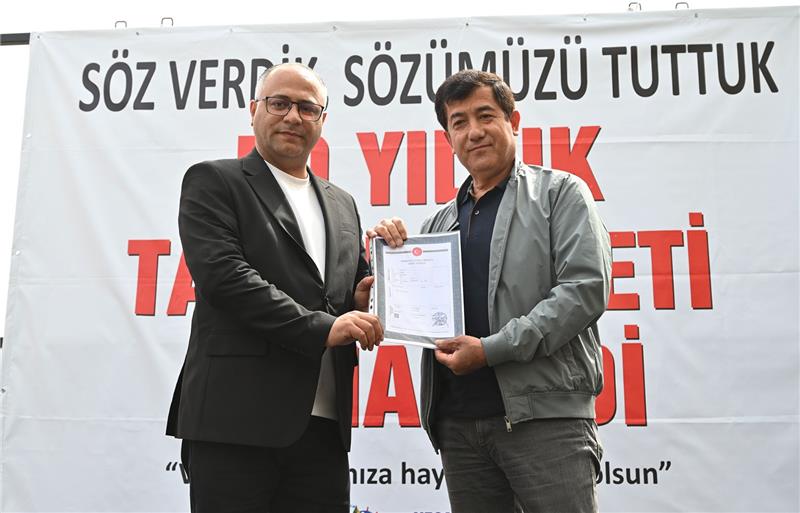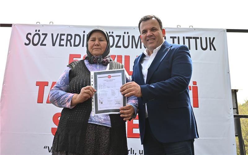 Bugün bu tapuları vermenin kendilerine nasip olmasından dolayı mutluluk duyduklarını ifade eden Başkan Topaloğlu, “Hayırlı, uğurlu olsun. Allah tapularınızı güle güle kullanmayı nasip eylesin.” dedi.