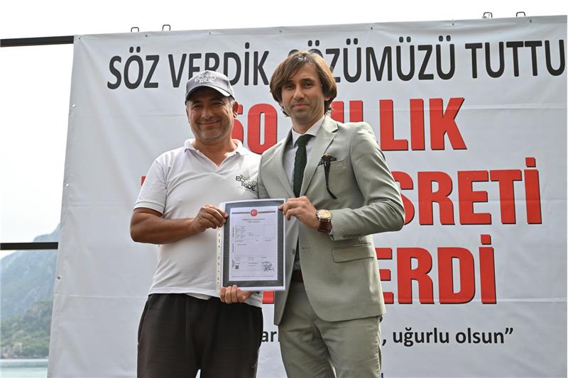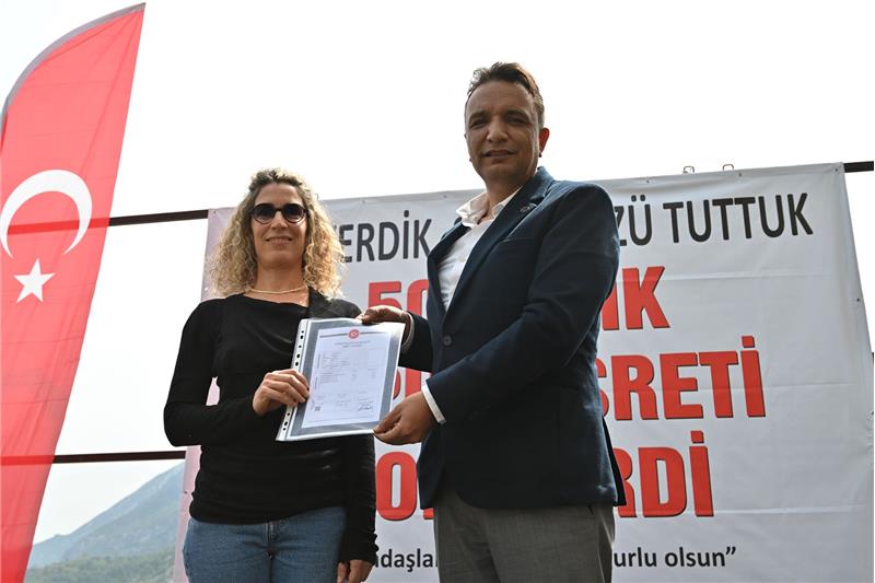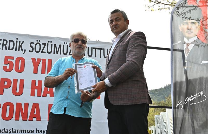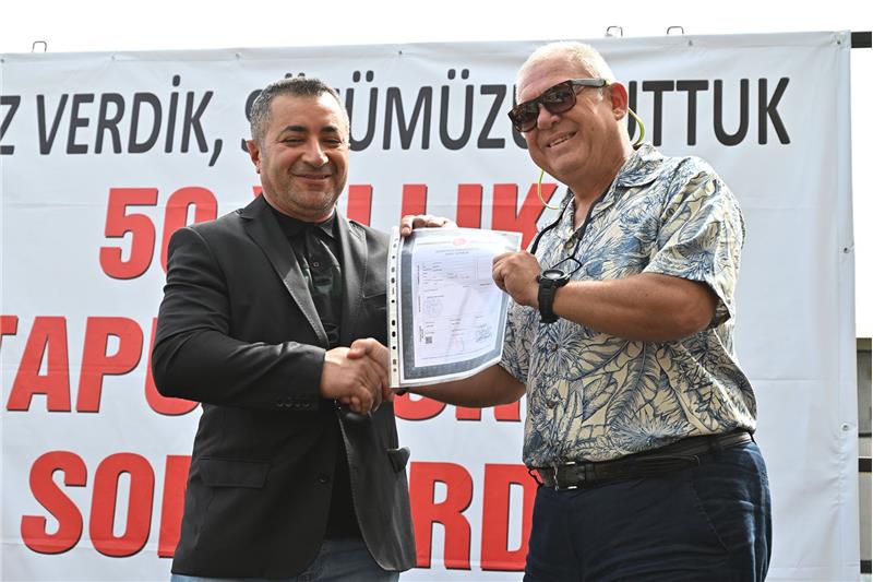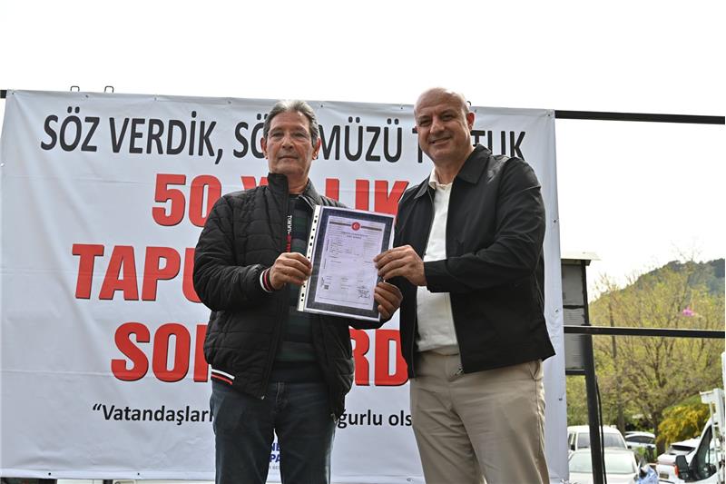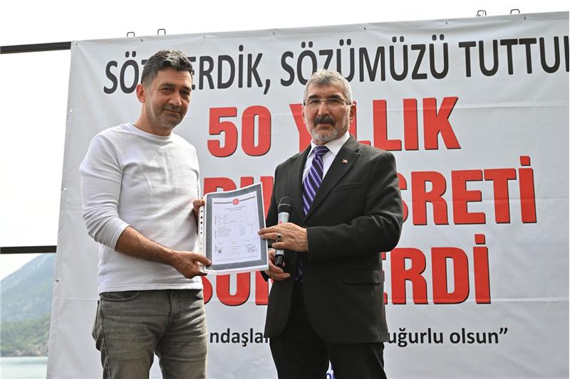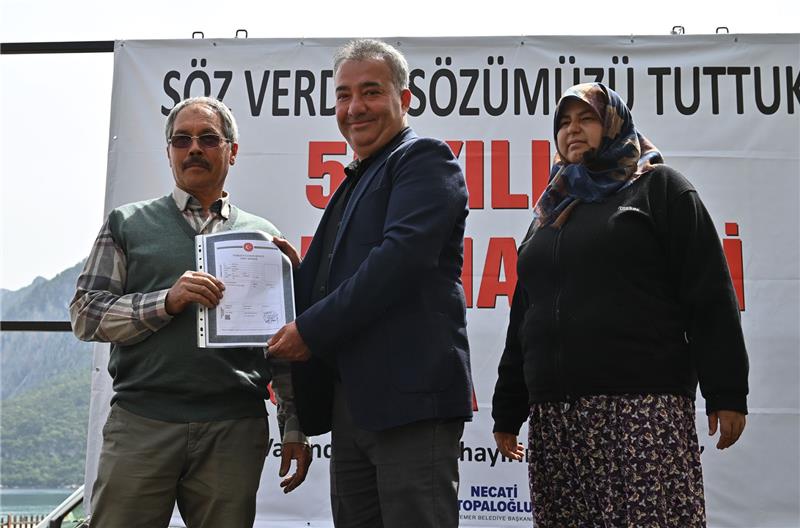 Program sırasında sahneye çıkarak tapularını alan vatandaşlar, Kemer Belediye Başkanı Necati Topaloğlu ve ekibine teşekkür etti.