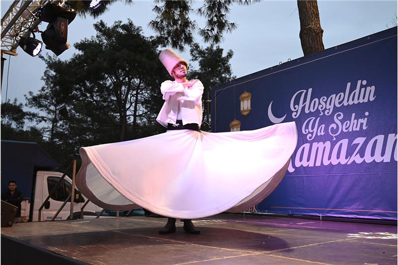 İftar yemeğine katılan vatandaşlar, iftar programı kapsamında düzenlenen semazen gösterisini ilgiyle izledi.