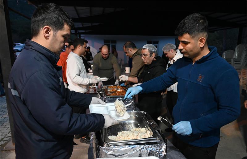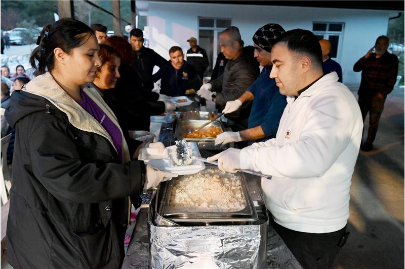 İftar yemeği öncesi Değirmendere'ye gelen vatandaşları Aşevi girişinde Başkan Topaloğlu ve beraberindekiler karşılarken, Kur'an-ı Kerim tilaveti ve dualar okundu.