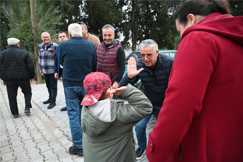 Başkan Topaloğlu ve beraberindekiler, iftar yemeği öncesi Çıralı Camii yanına gelen vatandaşları karşılayarak selamlaştı.