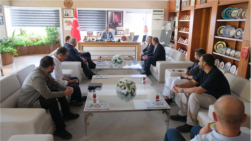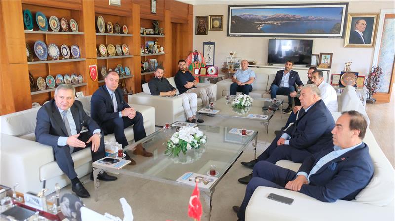 İmza töreni öncesi Başkan Topaloğlu, ziyaretten duyduğu memnuniyeti dile getirerek, misafirlere Kemer hakkında bilgiler verdi.