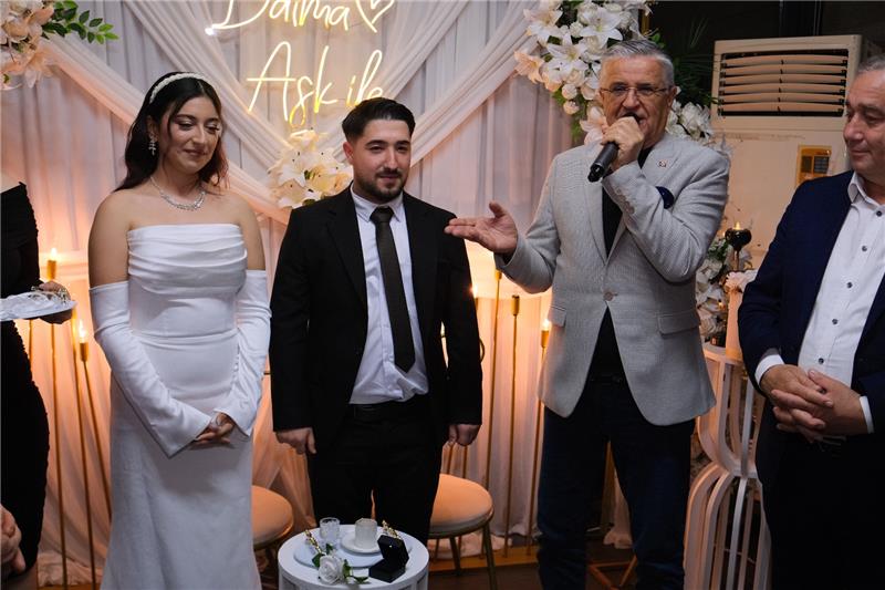 Kız isteme töreninin de Kadınlar Lokali'nde yapıldığı nişan merasiminde konuşan Başkan Topaloğlu, genç çifte evlilikle ilgili tavsiyelerde bulunarak, Kalkan ve Katrancı ailesini tebrik ettiğini söyledi.