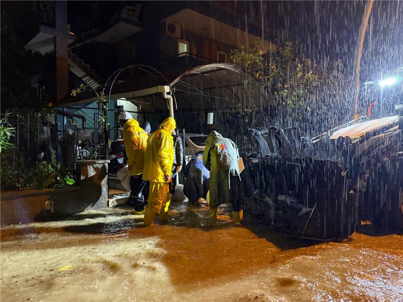 Kemer Belediye ekipleri, meteorolojiden yapılan turuncu kod uyarısı sonrası Kemer'de devam eden şiddetli yağıştan etkilenen vatandaşlara yardım elini uzattı.