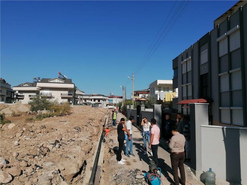 Kemer Belediye Başkanı Necati Topaloğlu, Kemer Belediyesi ile ASAT Genel Müdürlüğünce yapılan Kuzdere Mahallesi'ndeki altyapı çalışmalarını yerinde inceleyerek çalışmalarla ilgili bilgi aldı.