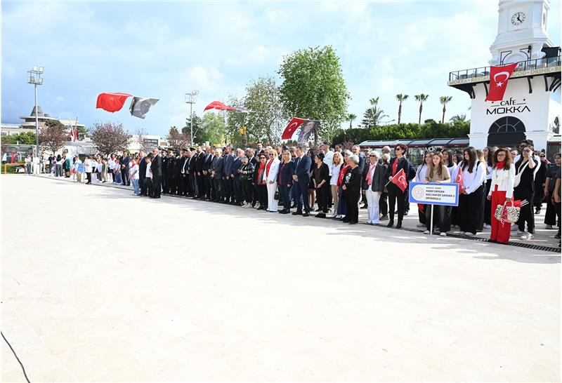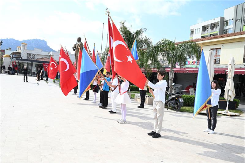 Cumhuriyet Meydanı'nda düzenlenen tören, İlçe Milli Eğitim Müdürü Mehmet Erkan Ergen'in Atatürk Anıtı'na çelenk sunmasıyla başladı. Saygı duruşu ve İstiklal Marşı'nın okunmasının ardından tören sona erdi.