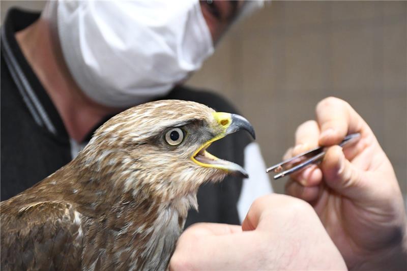 Kemer Belediyesi Veteriner Hekimi Fevzi Uzun, yaralı şahinin tedavisine başladı.