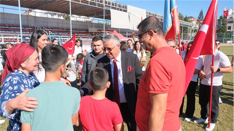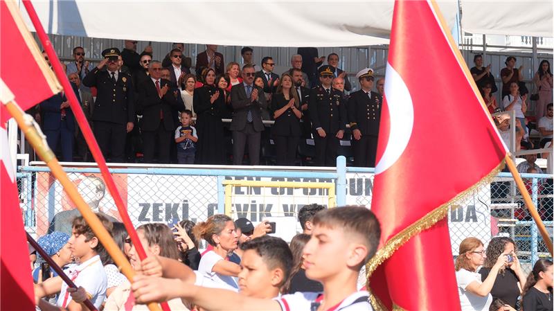 Program, ilçedeki okullarda öğrenim gören öğrencilerin protokol üyelerini bando eşliğinde selamlamasıyla sona erdi.