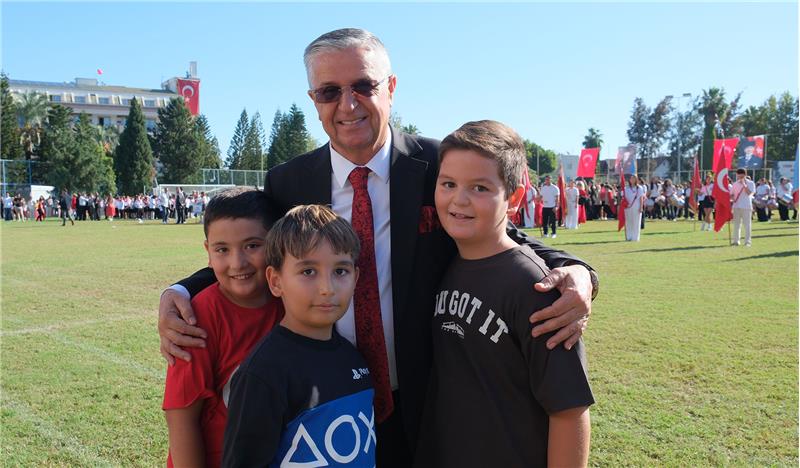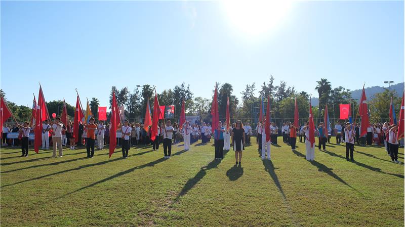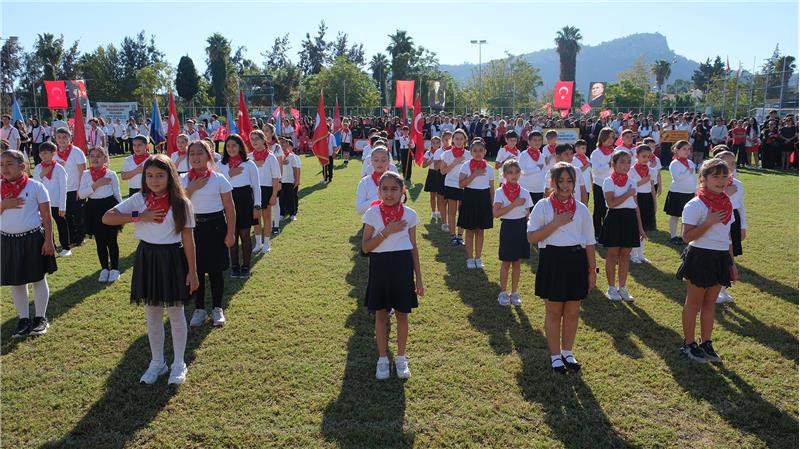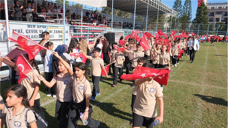 Kemer İlçe Milli Eğitim Müdürlüğü tarafından organize edilen program, Kaymakam Solmaz ve Başkan Topaloğlu'nun öğrencileri selamlamasıyla başladı.