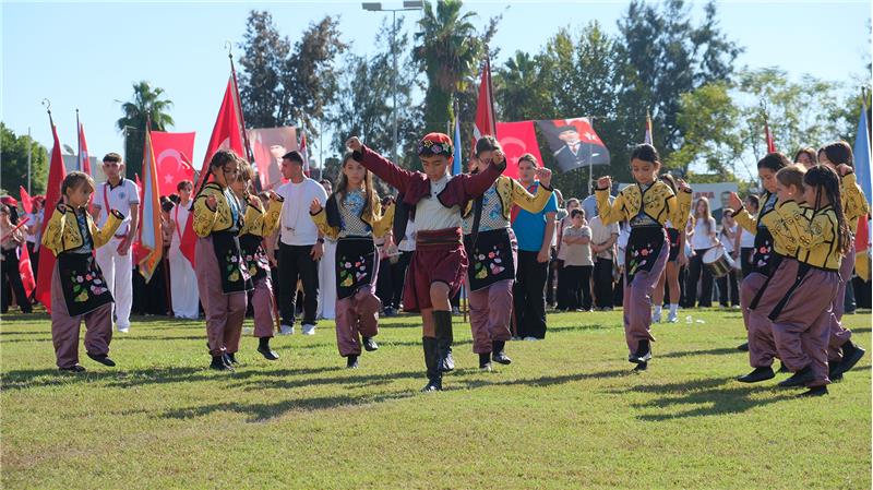 Programda, öğrenciler, Cumhuriyet konulu şiirler okuyup çeşitli halk oyunları gösterileri de sundu.