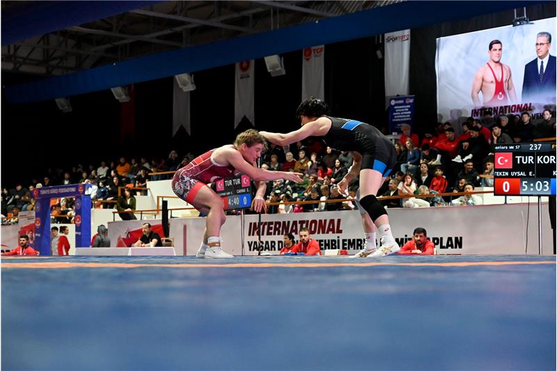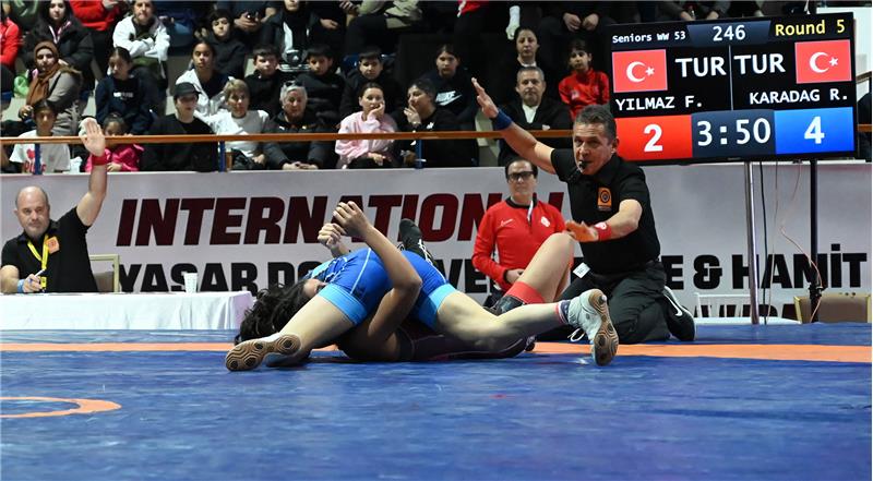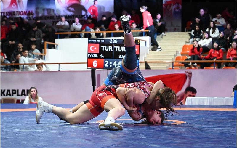 Yaklaşık bin kişinin katıldığı turnuvada sporcular, grekoromen, serbest stil ve kadın güreşi kategorilerinde dereceye girebilmek için kıyasıya mücadele ediyor.
