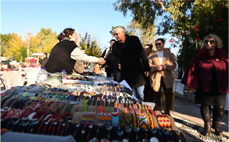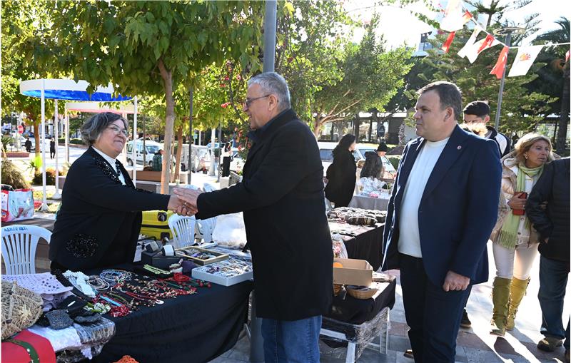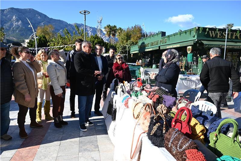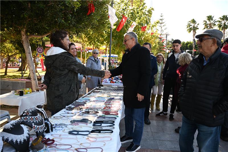 Başkan Topaloğlu ve beraberindekiler ilk olarak Atatürk Parkı'nda kurulan “Üreten ev hanımları” kermesinde stantları gezerek ev hanımlarına hayırlı işler dileklerinde bulundu.