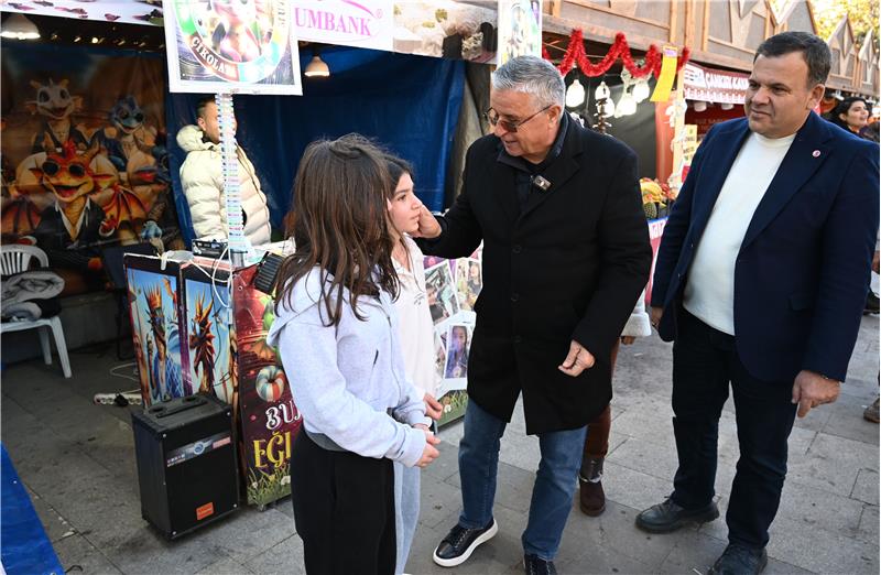 Başkan Topaloğlu'nun festival kapsamında parka kurulan oyun alanları için gelen çocuklara oyun jetonu dağıtması renkli görüntüler oluşturdu.
